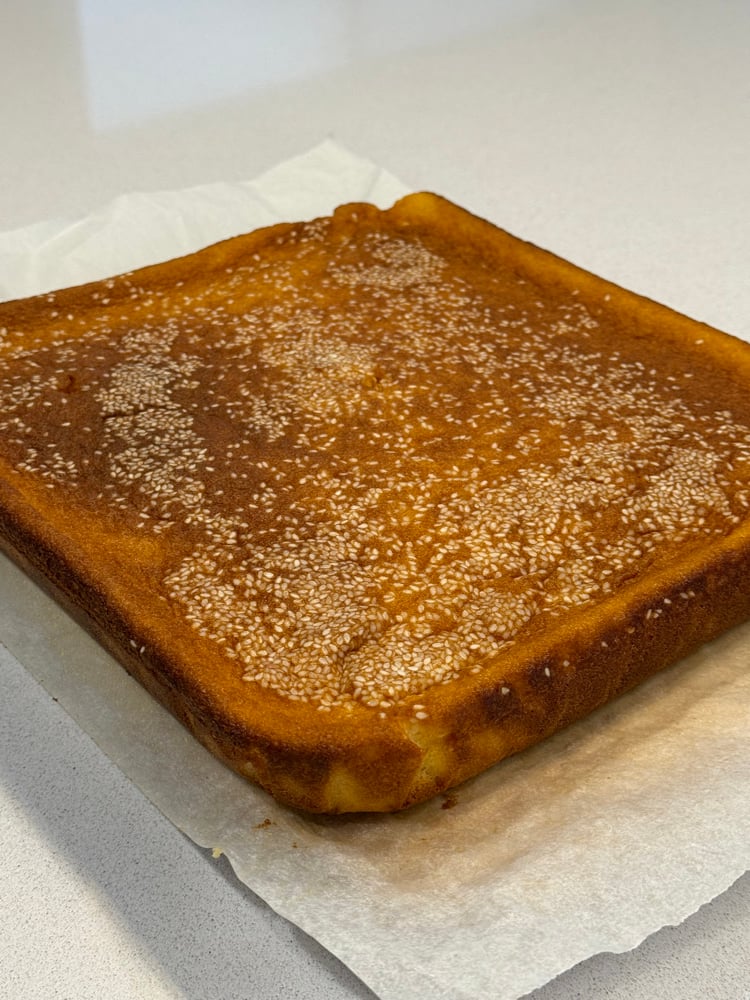 Made fresh with love using authentic ingredients like Queso Fresco, creamy sour cream, flour, and sesame seeds, our quesadilla is soft, moist, and lightly golden on top – perfect for breakfast, a midday treat, or dessert.